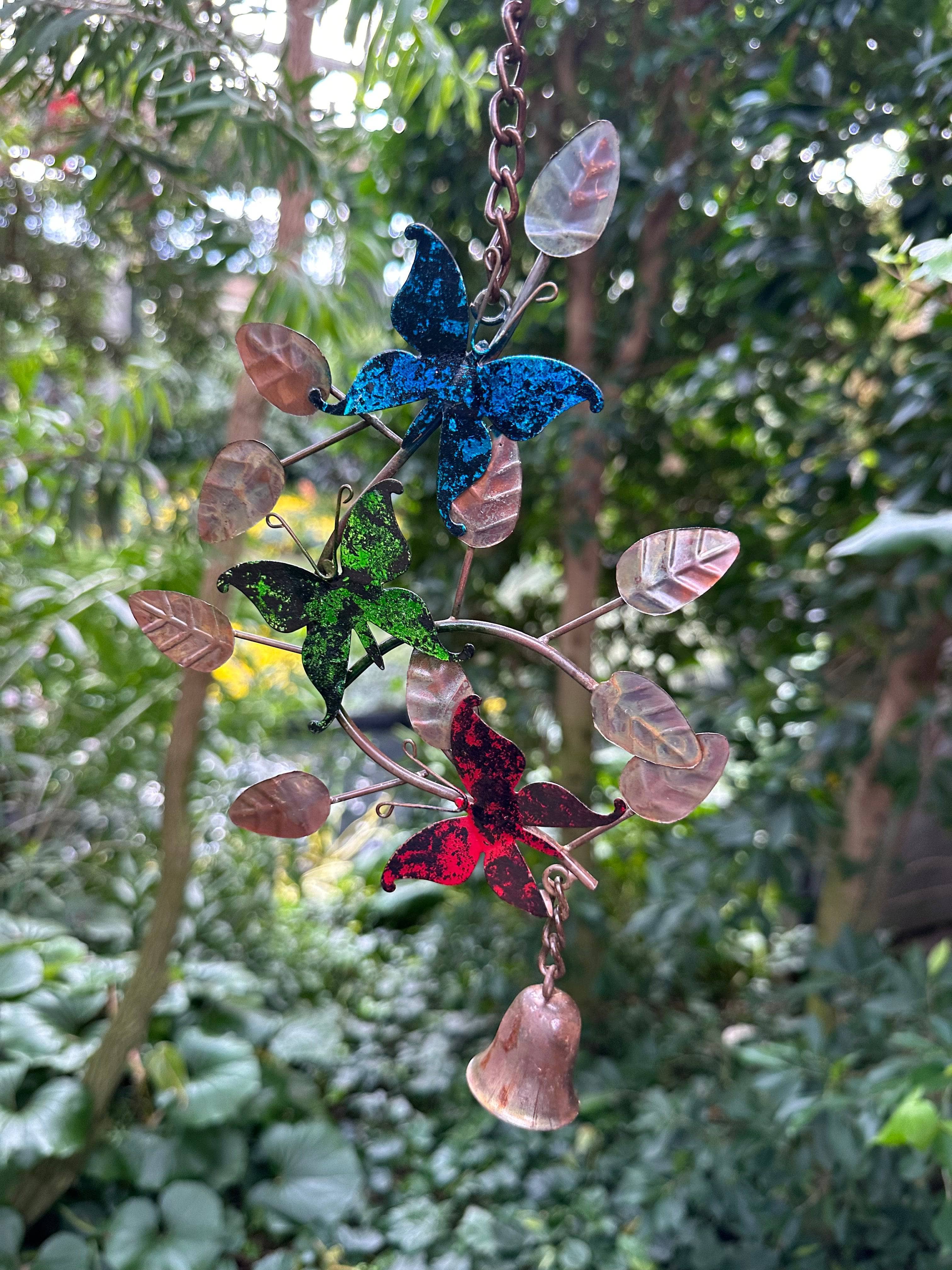 WIth its handcrafted butterflies, unforgettably bold jewel-toned hues, and sweet little bell, this hanging ornament is downright breathtaking. Full of elegance and class, it’s the perfect addition to any outdoor space, especially more formal gardens and yards. Wherever you decide to place it, rest assured this is the kind of piece that’ll turn heads for years to come.